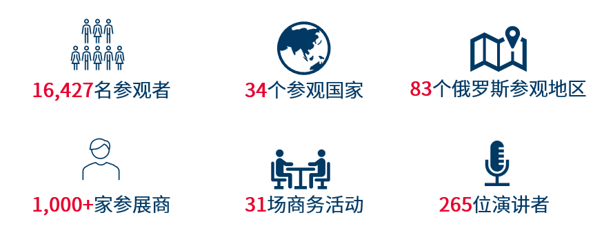 2025年,展会共吸引来自72个国家、俄罗斯83个地区的16,427名专业观众。