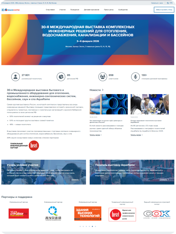 第30届俄罗斯暖通、卫浴及水池设备展览会将于2026年2月3-6日在莫斯科CROCUS展览中心隆重举行。为助力参展企业最大化品牌曝光与商业机会,Aquaflame现推出全方位广告宣传方案,助您在展会期间及后续影响力持续发酵!