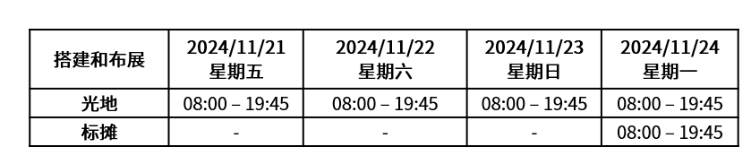 标摊展位展商不晚于11月24日14:00到达展位布展