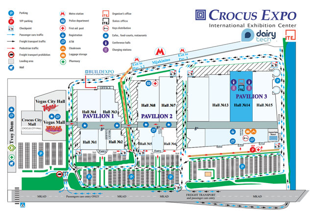 载重车辆只能通过莫斯科大环路的第一个出口进入展馆区域,禁止通过拱门进入。