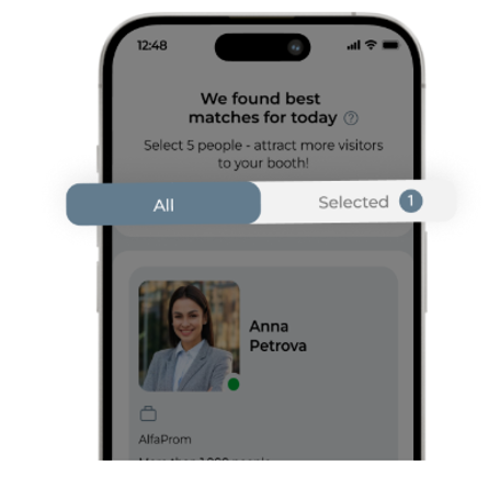 您可以发送消息,并邀约其在展会现场会面。可立即在 “已选” 板块操作,也可后续再进行对接。