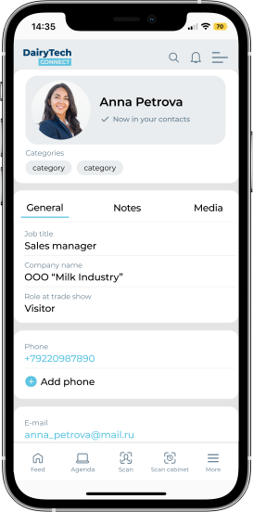 展会期间,可使用免费的电子联系方式交换服务 —— 线索扫描。扫描完成后,联系人详情将自动显示并保存至 “扫描管理” 板块。